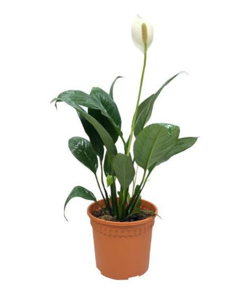 A flowering indoor plant with lush green leaves. Renowned for air purification and low light tolerance.