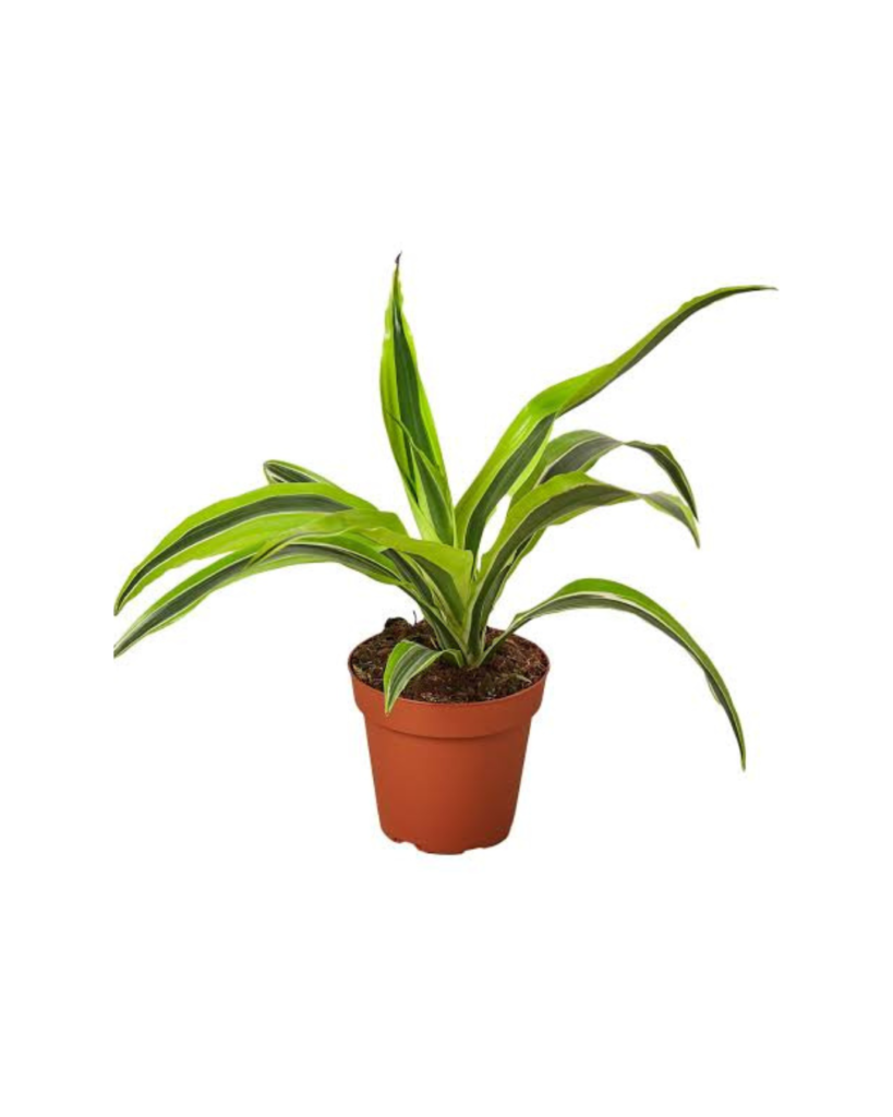 Corn-like leaves with light green stripes. Low-light tolerant and visually impactful.