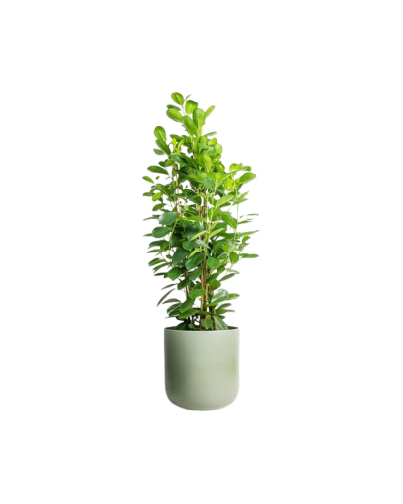 A slender-leaf fig with upright growth. Tolerates low light and adds a refined look to interiors.